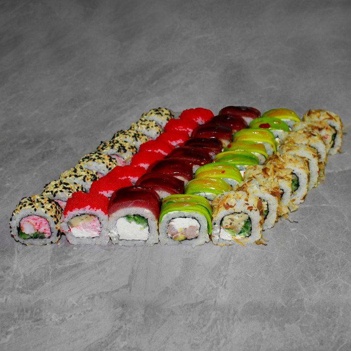 магуро : рис, нори, огурец ,сыр филадельфия, омлет тамаго, стружка тунца