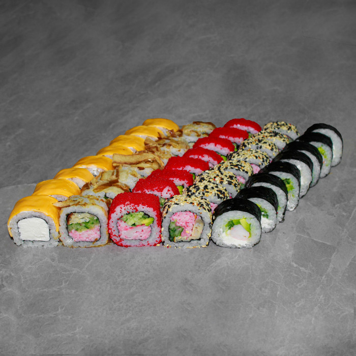 курими : рис, нори, креветка тигровая, авокадо, огурец, сыр филадельфия